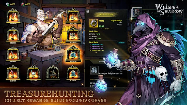 Summon, collect & grow with hundreds of heroes, forge your exclusive gear and create the perfect lineup! Customize your powerful squad through Whisper of Shadow's various build systems and ensure your great victory!