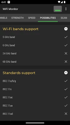 WiFi Monitor is a powerful tool that allows you to analyze the state of WiFi networks and track its parameters (signal strength, frequency, connection speed, etc). It is useful for setting up a wireless router and Wi-Fi usage monitoring. It can also be used as a scanner helping to discover devices connected to WLAN.