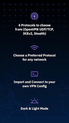 • Support for many protocols: WireGuard, OpenVPN, IKEv2, Stealth, WStunnel