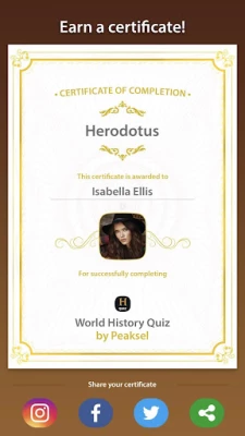 Playing a world history trivia quiz might get boring, but not with World History Quiz – Trivia Questions and Answers! With 150 general history questions and answers, you will read 150 super fun history facts you have never heard before. Do you know the answer to all the American history quiz questions? How about World War 2 quiz questions? You'll have to know the answers to history trivia questions from the period of ancient Egypt and the pyramids to Hiroshima, Nagasaki, Chernobyl and the Cold War in order to get the certificate of a true historian.