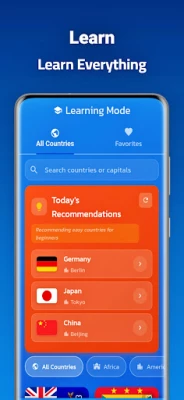 Learn about 195 countries through an engaging quiz game featuring flags and capitals.