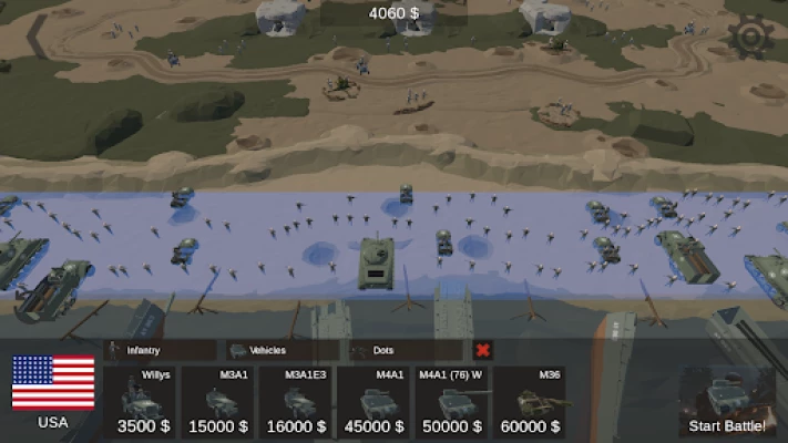 Step into the epic battles of World War II with WW2 Battle Simulator! Experience immersive campaigns as the USA and Germany, each featuring three unique missions. Future updates will bring campaigns and units for the USSR, UK, Japan, and France. Utilize the sandbox mode to create your own battles on maps from the campaign missions. With 25 unique units currently available. Strategize, place your units, and watch as they clash in realistic RTS-style combat. Relive history and command your army to victory in war!