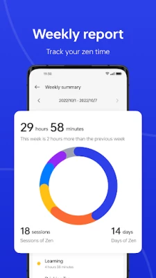 In the Deep Zen space, the system automatically silences all notifications and disables all apps other than the Camera, so you can give your undivided attention to the task at hand. A Light Zen space allows you to choose the apps you need in different circumstances, so you can quickly find your zen and get on with things. You can create multiple Light Zen spaces and switch between them as necessary. We've also provided a dashboard where you can view your zen data and share your zen achievements. *Zen Space is currently available only for devices running ColorOS 13.1 or a later version. For devices that do not support Zen Space, Zen Mode (the older version of Zen Space) will be downloaded.