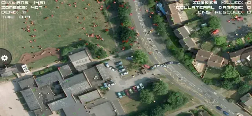 Zoom in and out to keep track of the infection as it spreads across the map! Watch from a high satellite view to get an overview of the infection, or zoom right in and watch as civilians run for their lives, shoot at zombies and inevitably become infected. Keep track of the people's only hope - local law enforcement, as they fight back against overwhelming odds.