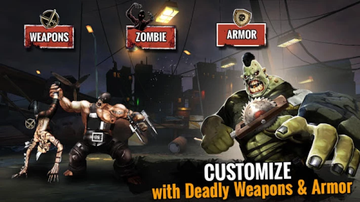 Your mission is to create your Zombie fighting team with an array of bone-crushing weapons and take on the undead in gruesome pit fighting leagues. Collect three classes of zombies with unique skills, strength, power, attacks, and agility to defeat mighty opponents.